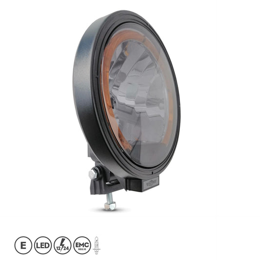 23см SIM BLACK EIDITION Кръгъл халогенен фар за мъгла с насочена светлина със затъмнено стъкло + LED Angel Eye / Ангелски очи в оранжева светлина 12V - 24V E- mark