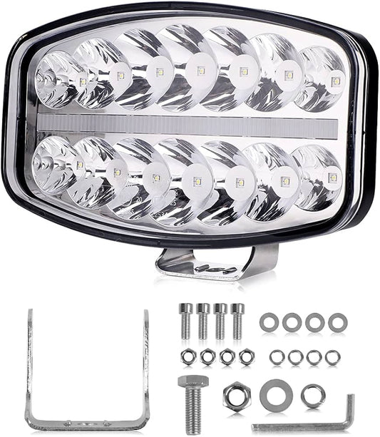 80W LED Лед Фар Халоген с DRL дневни светлини габарит бяло - оранжево неон ефект 24,5см x 13,9см, 4100lm, 12V - 24V, E-Mark Подходящ За DAF MAN Scania Volvo и др.
