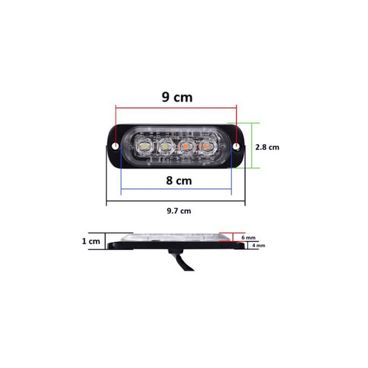 4 LED Аварийна светлина 10см за Пътна Помощ, Жълта Блиц Светлина, Мигаща