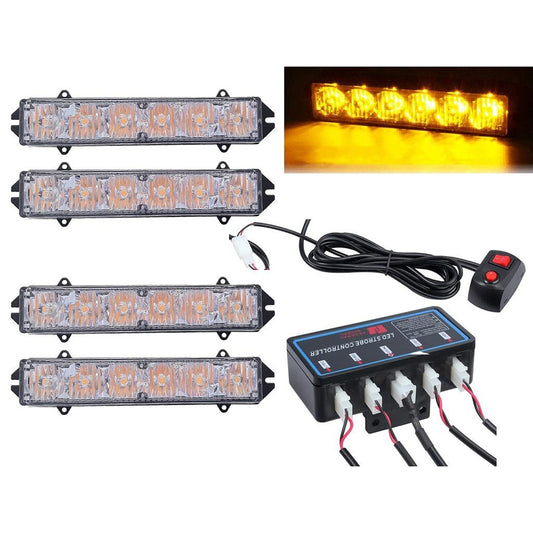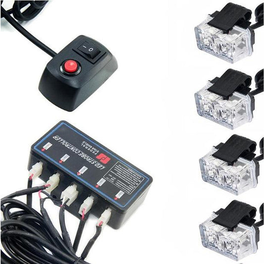 Комплект 4бр аварийни светлини с контролер, Мигаща блиц светлина, 8 режима на работа, 12V