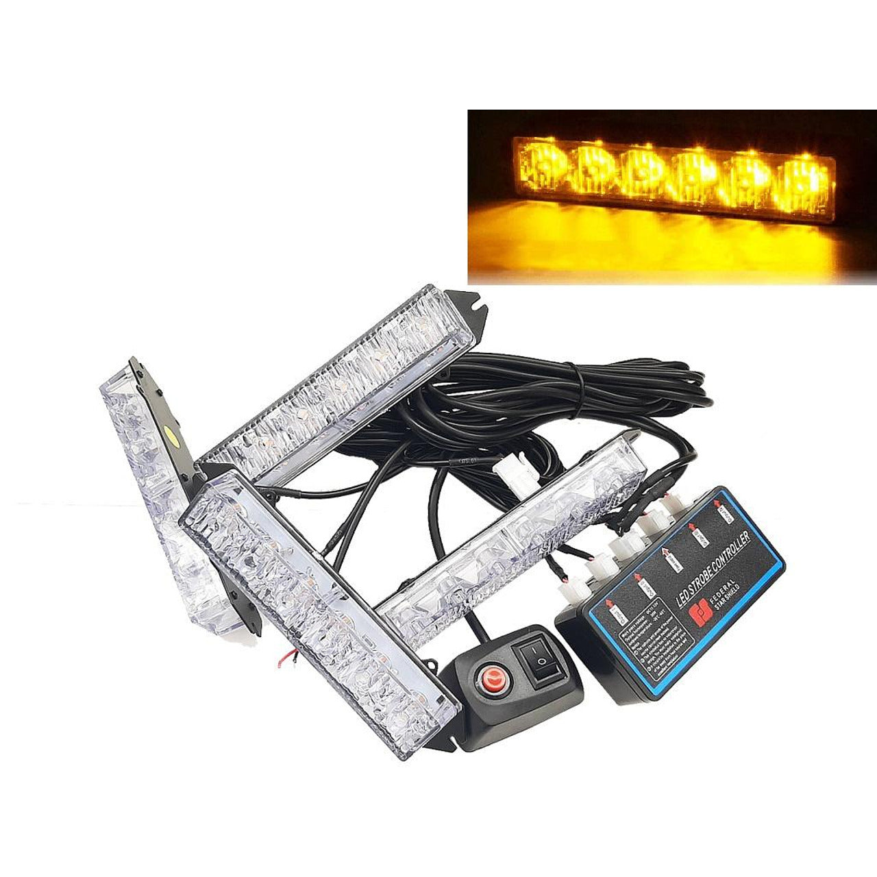 Комплект 4бр аварийни светлини с контролер, Мигаща блиц светлина, 8 режима на работа, 12V