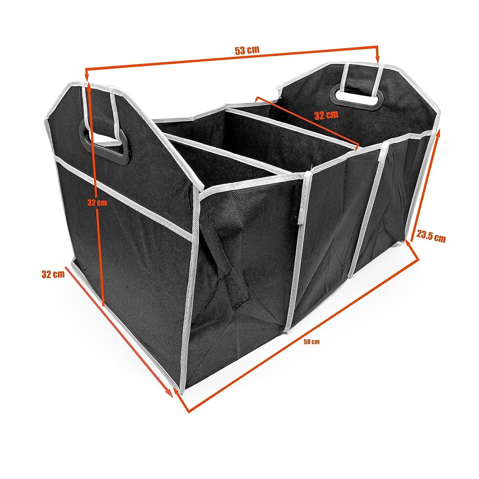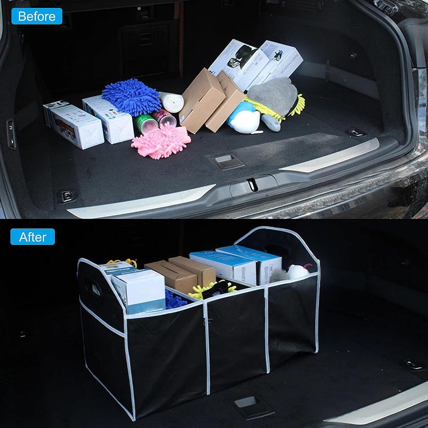 Органайзерът е специално проектиран с гъвкави размери, за да пасне на различни типове багажници, като гарантира оптимално използване на пространството дори при по-малки автомобили.