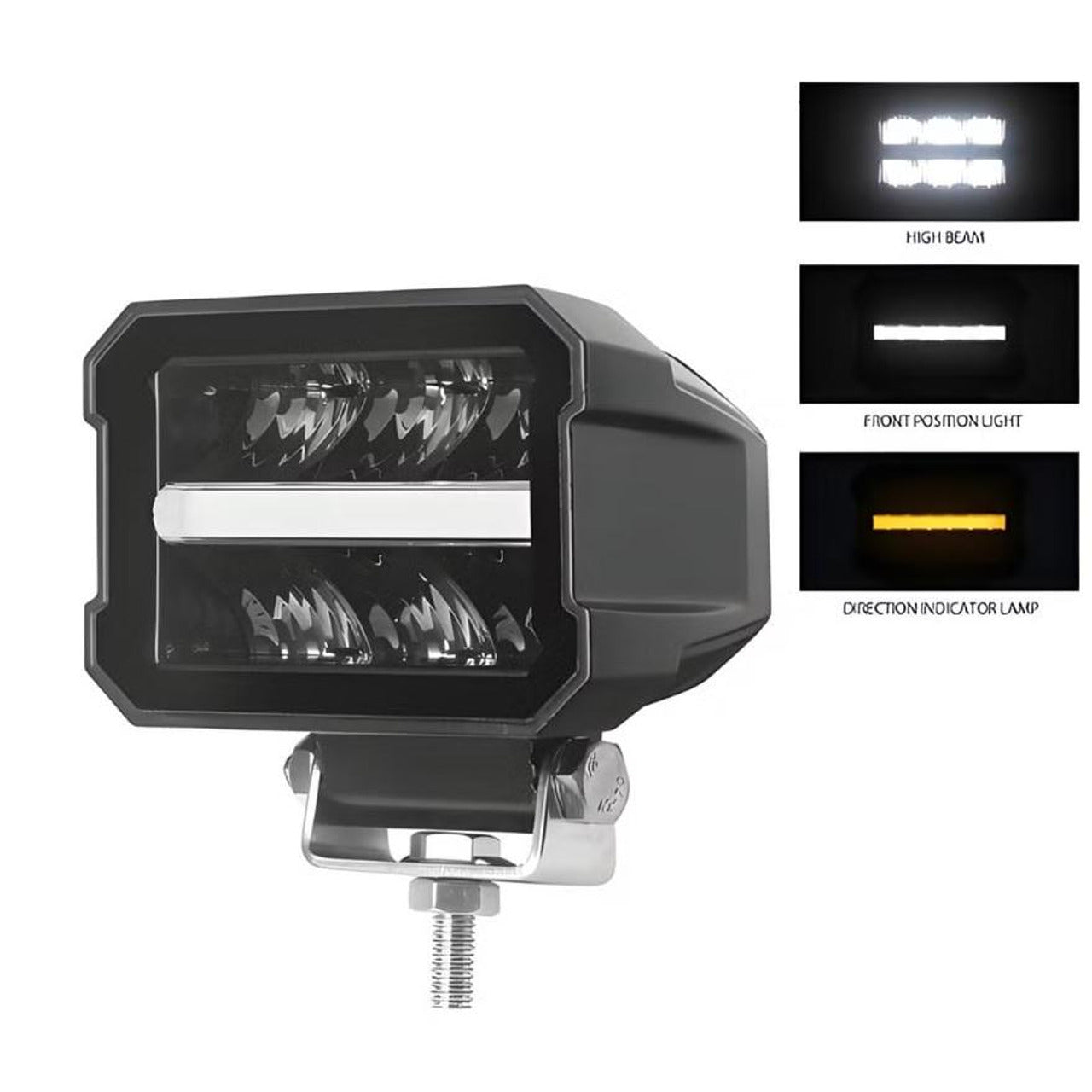 Универсален LED фар с бяла основна светлина и дневна светлина DRL в бял и оранжев.