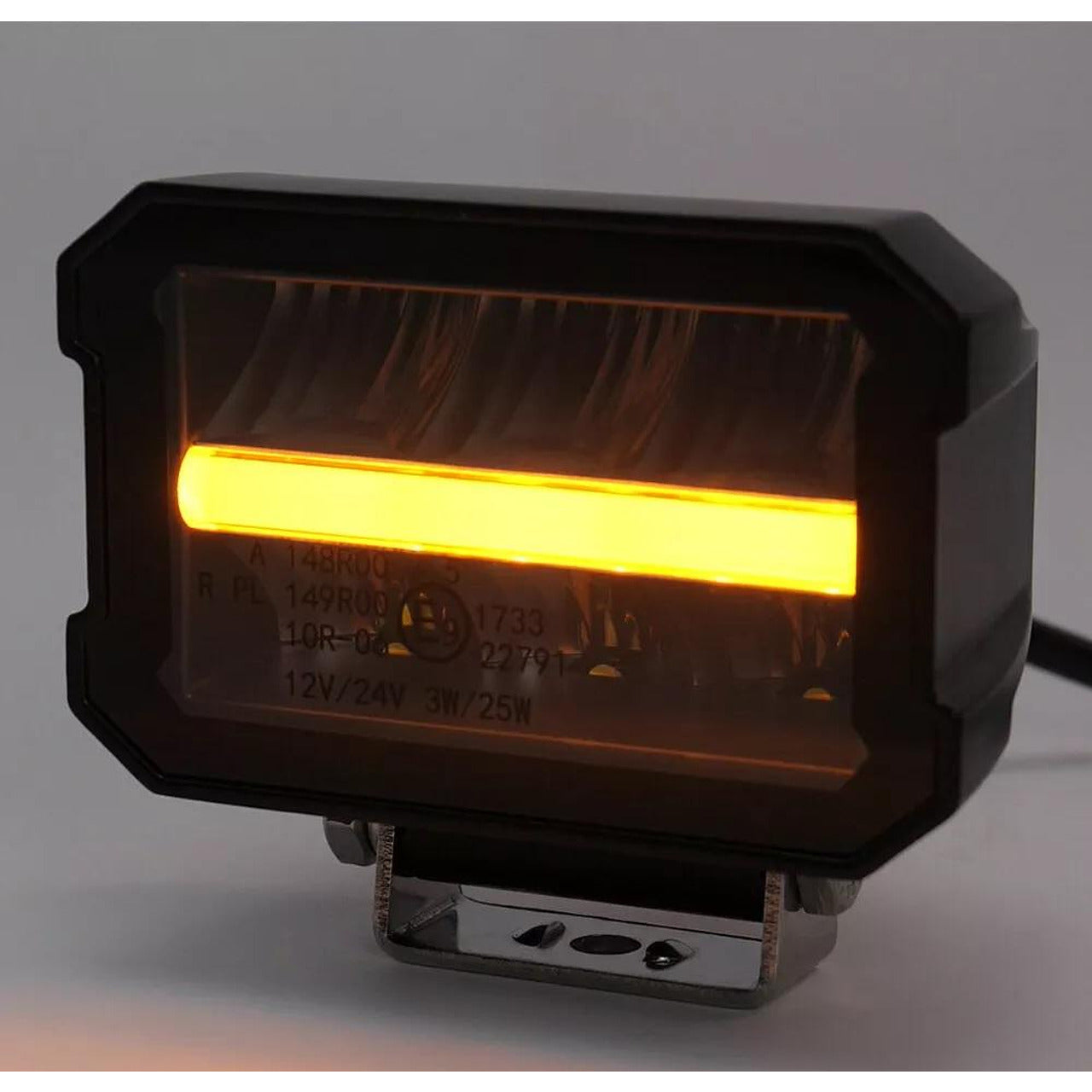 Универсален LED халоген/фар 11см с бяла основна светлина + дневна бял и оранжев цвят 12V/24V E-mark