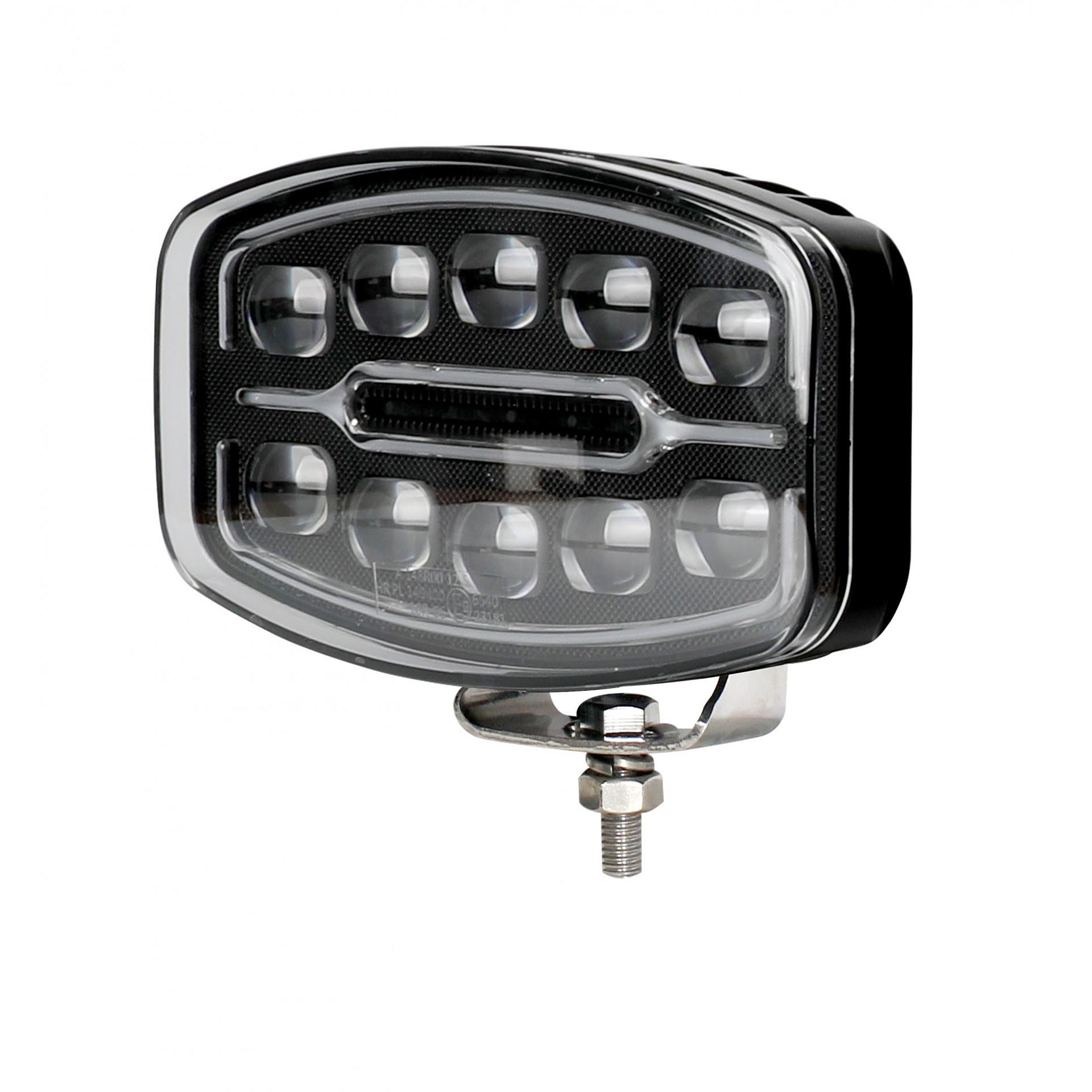 1бр LED фар 55W 12V - 24V с DRL светлина бяло-жълто 245x159x90mm