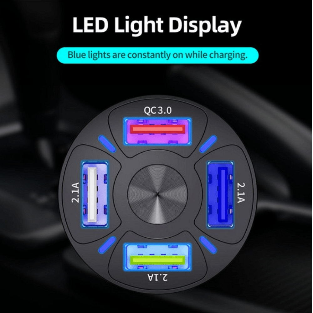 Универсално USB зарядно с 4 порта 12V-24V Quick Charge 3